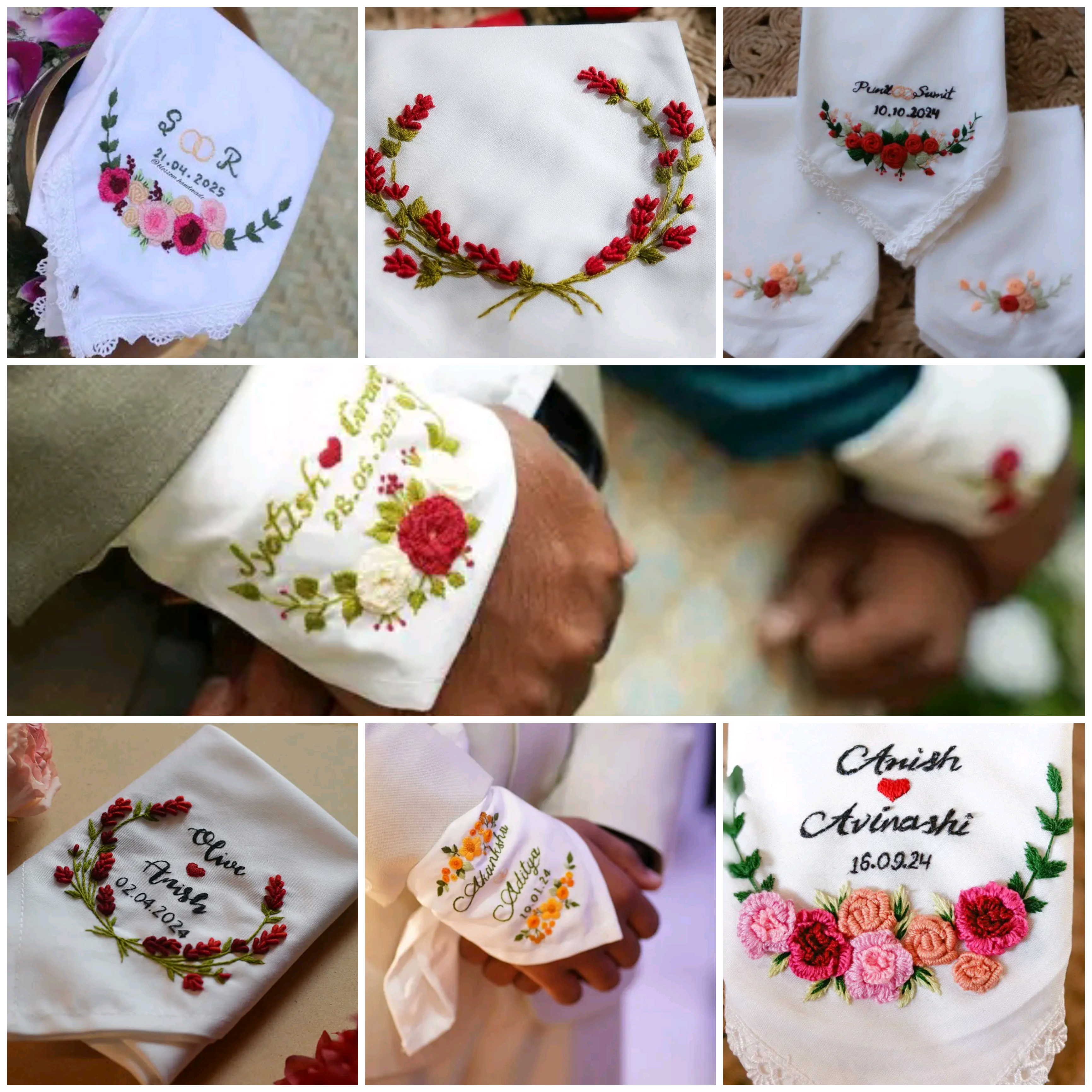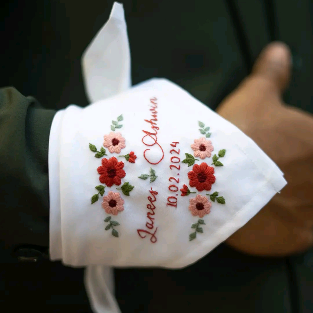 प्यार और यादों को एक खूबसूरत रूप दें... हमारे हाथों से कढ़ाई किया हुआ प्रीमियम रूमाल... इसमें आप अपना नाम, कपल नाम, विवाह तिथि या मनपसंद संदेश कस्टम तैयार करा सकते हैं।