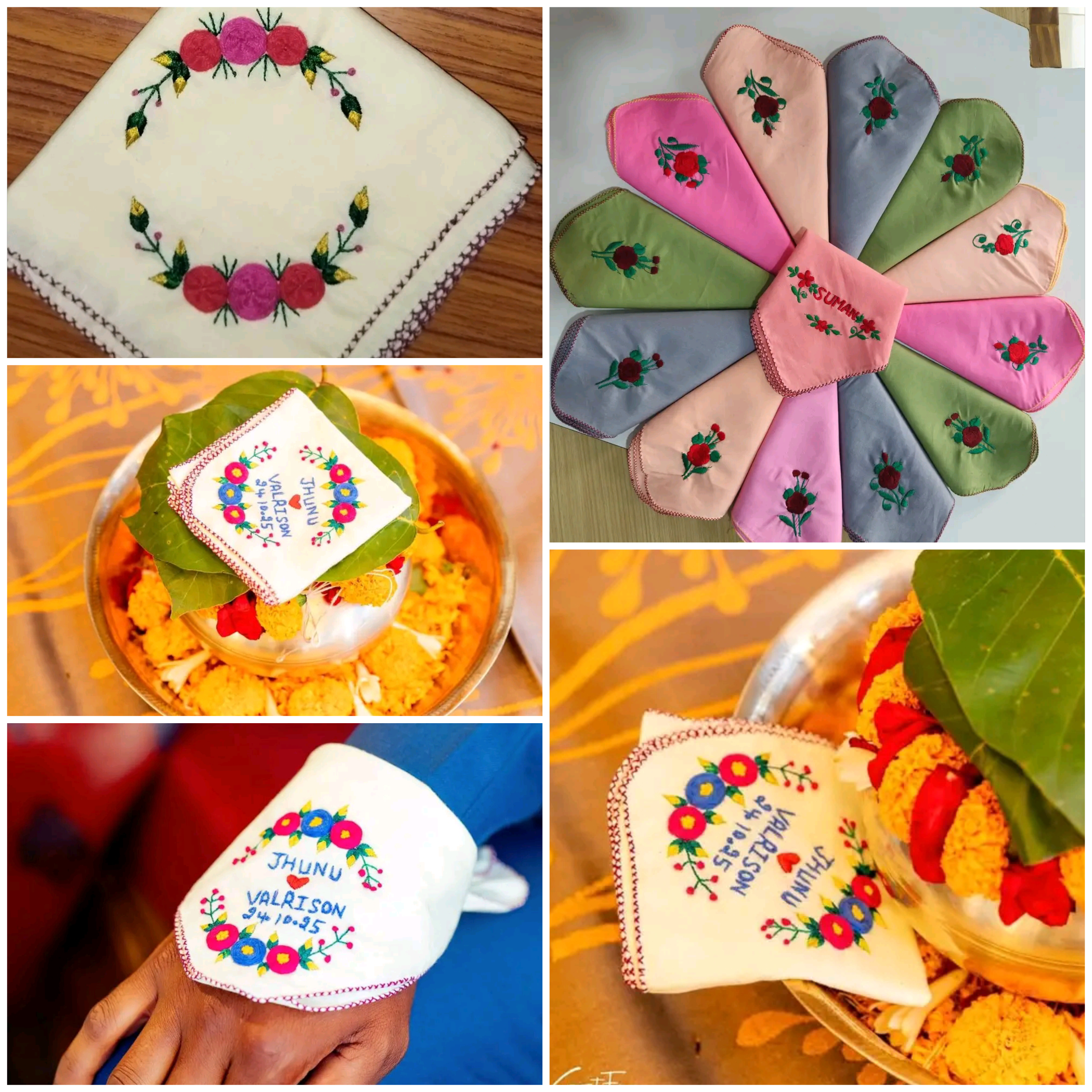 कई खूबसूरत colour options available हैं। ➡️ रुमाल में ultra soft, skin-friendly fabric इस्तेमाल किया गया है। ➡️ हर रुमाल पर ultra-fine handmade embroidery की जाती है। ➡️ बारीक detailing, साफ-सुथरी stitching और elegant finishing इसकी खासियत है।
